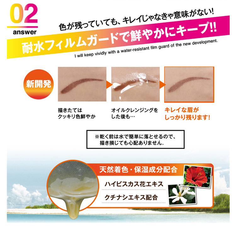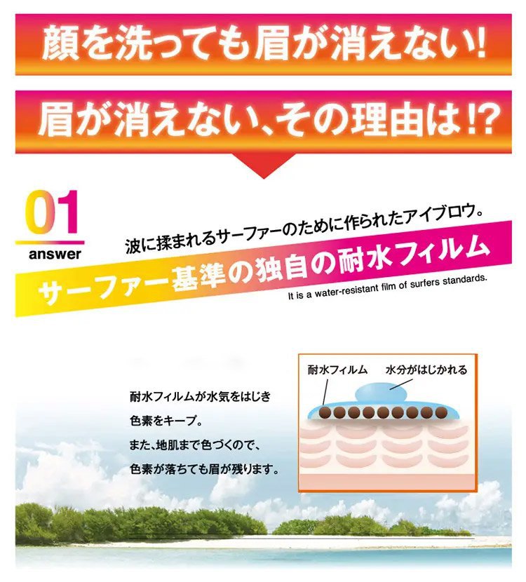 3日間だけの特典,さつととかすだけで簡単、一気に自眉を描き足せる、まるで自眉が増えたみたい、汗・皮脂に強いから、メイク直しいらず。